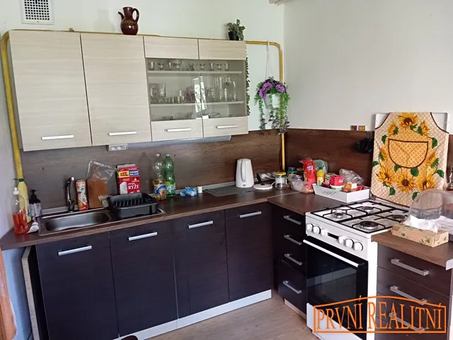 - chodba, obývací pokoj, koupelna s WC, spíž, kuchyně, pokoj