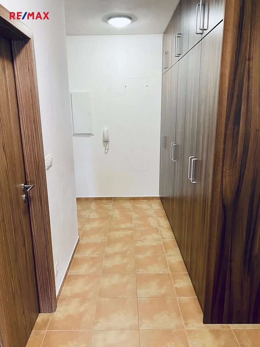 Byt je dispozičně rozdělený na vstupní chodbu, zde jsou k dispozice velké skříně. Dále je zde koupelna s vanou a wc, ložnice a velký pokoj, kde je vybavená kuch.linka a obývací část.