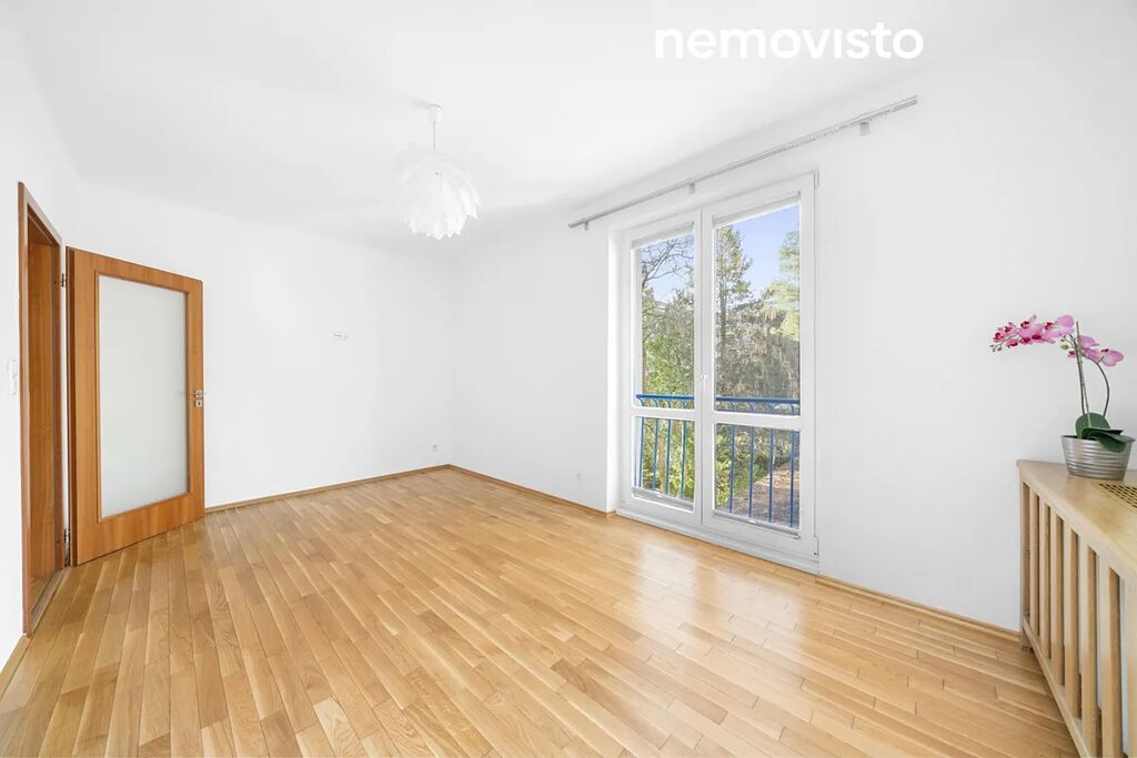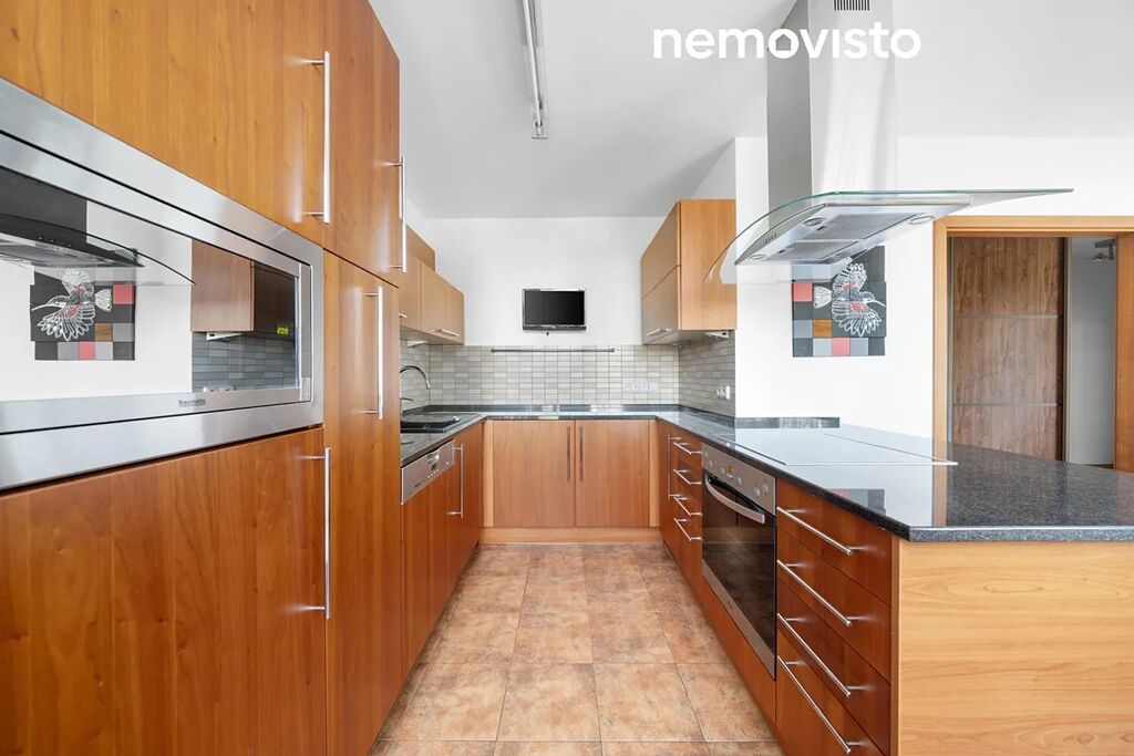 Byt se nachází v cihlovém domě ve třetím podlaží bez výtahu. Velkorysá dispozice 3+1 o výměře 100 m2 nabídne kuchyň spojenou s jídelnou, velký obývací pokoj se vstupem na balkón a dvě ložnice. Kuchyně je vybavena spotřebiči MIELE (indukční varná deska, digestoř, horkovzdušná trouba, myčka nádobí, lednice a mikrovlnná trouba) a je propojena s jídelnou. V chodbě oceníte velké vestavěné skříně na oblečení. Koupelna nabídce sprchový kout. Toaleta je samostatná. Využít můžete praktickou komoru v chodbě.