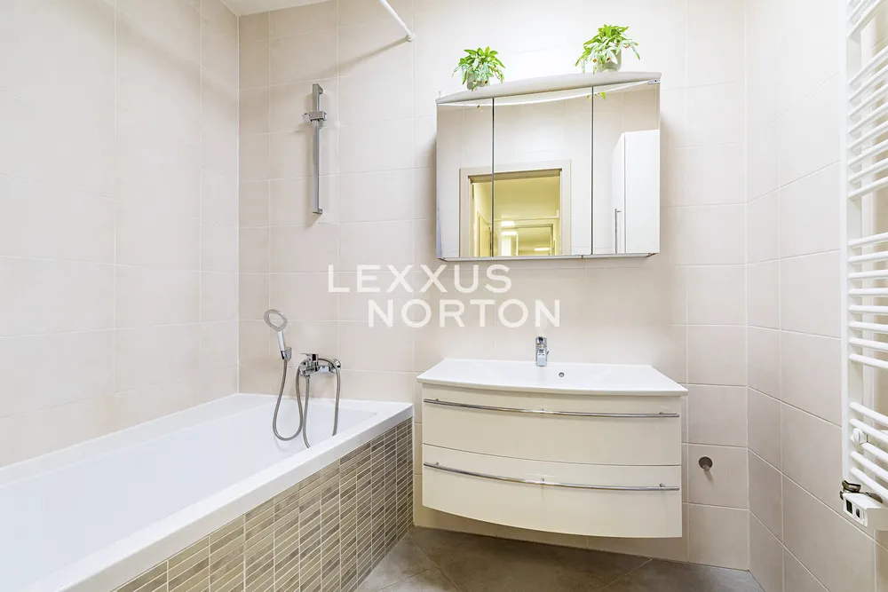 Byt je vybaven kuchyňskou linkou na míru s kvalitními spotřebiči značky Bosch. Obývací pokoj i ložnice jsou kompletně zařízené. Celkové vybavení bytu je v moderním stylu, s důrazem na funkčnost a pohodlí.