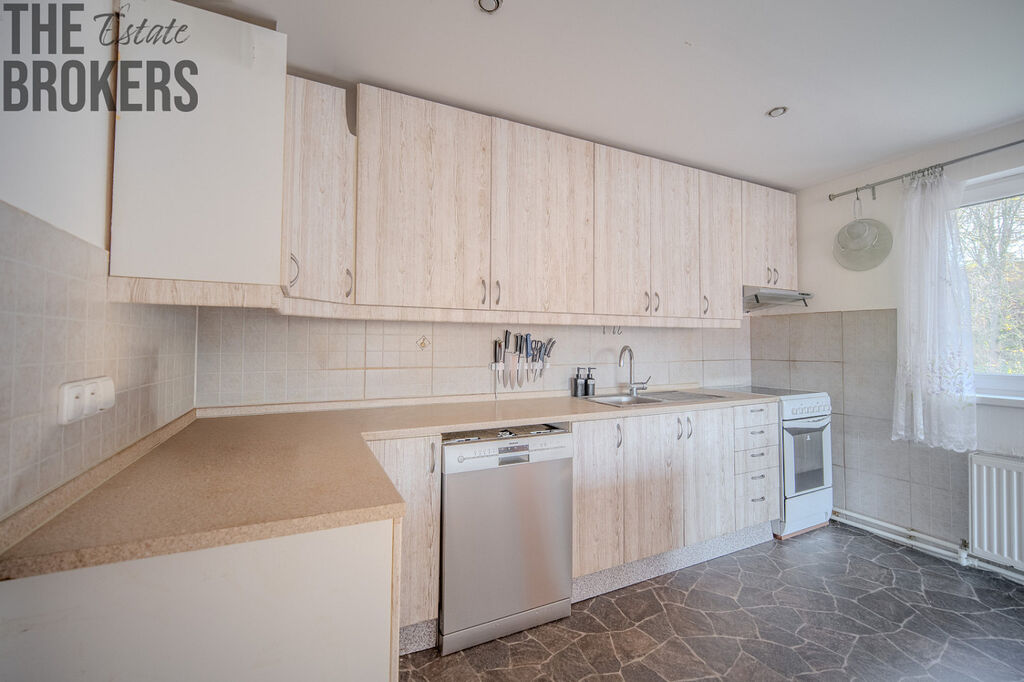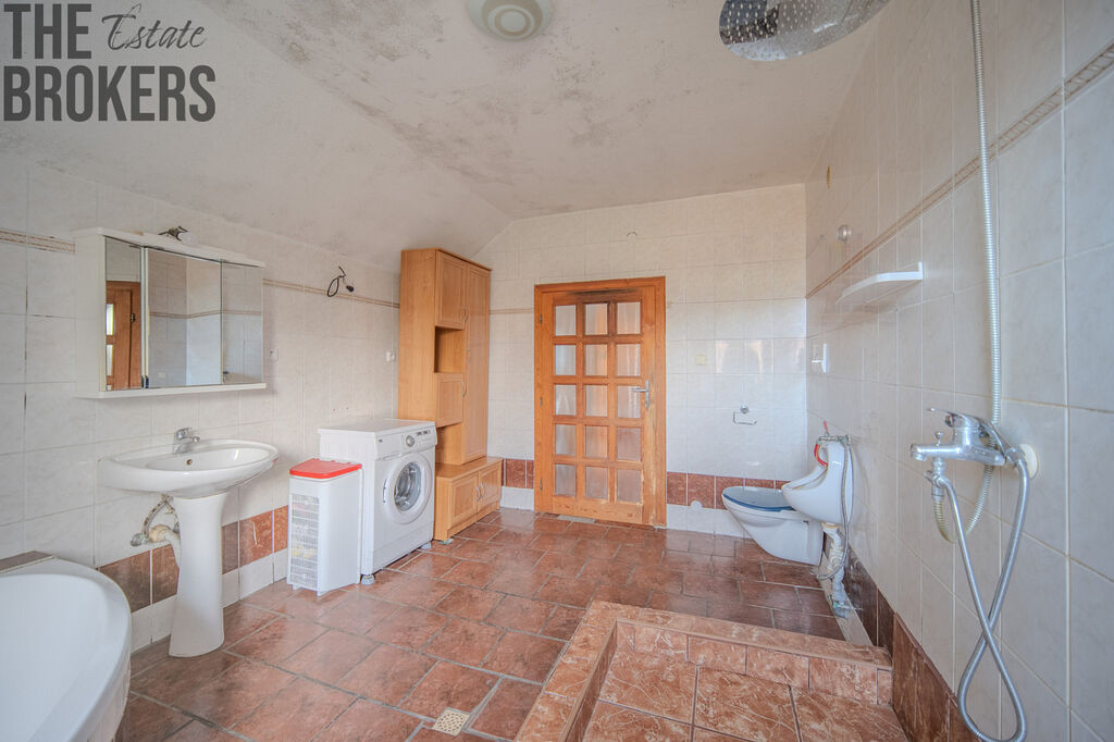 Část domu je tedy již po renovaci, zatímco jiné části jsou v dokončovací fázi, což umožňuje novému majiteli dotvořit si interiér přesně podle svého stylu a potřeb.