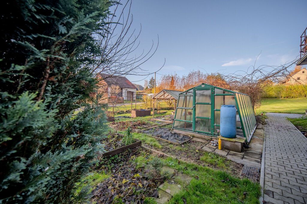 Pozemek je pravidelného tvaru, orientovaný na jih a kompletně oplocený. Součástí je: