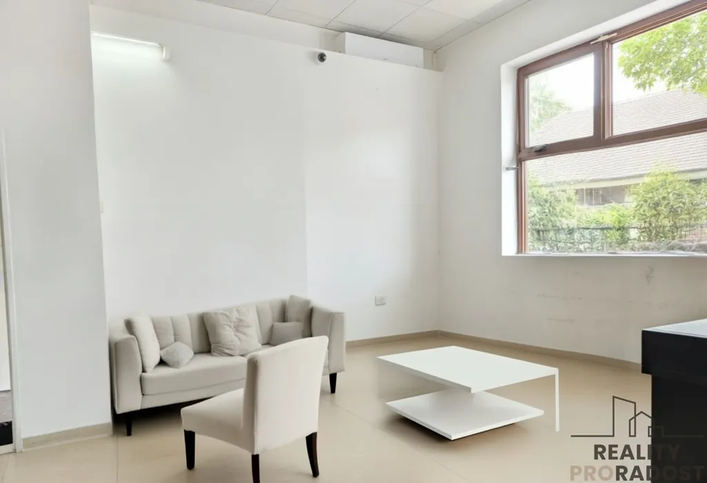Prostor je částečně vybavený a připravený k okamžitému využití. Součástí je kuchyňka, skladové prostory, toaleta a zkušební kabinky.