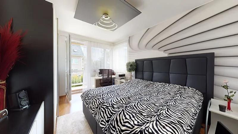Nabízím Vám exkluzivně ke koupi krásný a vkusně zařízený byt 2+1 o celkové rozloze 66 m2 umístěný ve zvýšeném přízemí z celkových 3 pater cihlového domu ve Vizovicích na ulici 3. května (Janova hora). Bytový dům je postaven v roce 2007. Nízké náklady na bydlení – byt má samostatné měřiče všech dodávaných energií. Vytápění a ohřev vody zajišťuje vlastní plynový kotel umístěný v technické místnosti na chodbě. Byt má rozlohu 66 m2, kde se nachází obývací pokoj, ložnice s nábytkem na míru a se vstupem na lodžii, kuchyň s jídelním koutem, vstupní chodba, koupelna a samostatné WC. K bytu náleží rovněž sklep umístěný v přízemí bytového domu. Součástí bytu je rovněž lodžie, a především krásná velká terasa o výměře 35 m2 (není započtena v rozloze bytu) poskytující odpočinkovou zónu a soukromí včetně zahradního nábytku. Kuchyňská linka je na míru včetně elektrické trouby, sklokeramické desky a digestoře, myčky na nádobí, lednice a jídelní sestavy. V obývacím pokoji je sedací souprava, TV, nábytek na míru. Rovněž je nábytek na míru ve vstupní chodbě, ložnici. V koupelně je sprchový kout, umyvadlo se skříňkou a zrcadlem a elektrický topný žebřík. V obývacím pokoji je francouzské okno se vstupem na terasu. Ve všech oknech jsou žaluzie a v kuchyni navíc rolety. V bytě je zabezpečovací zařízení – alarm. Parkování je možno přímo před bytovým domem. U bytového domu je dětské hřiště. Byt je možné financovat případně i hypotečním úvěrem. K bytu je možné přikoupit i garáž ve vedlejším bytovém domě – nelze ji koupit samostatně. Prohlídka bytu je možná kdykoliv po předchozí domluvě.
