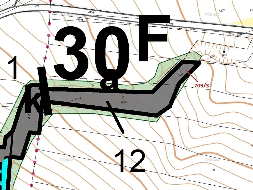 Lesní pozemky o výměře 301 m2, parcelní číslo 709/3, podíl 1/1, katastrální území Jemnice u Oseka, obec Osek, obec s rozšířenou působností Strakonice, okres Strakonice, Jihočeský kraj. Po těžbě.