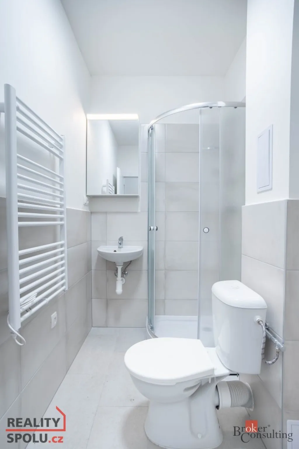 Byt disponuje novou koupelnou se sprchovým koutem a WC.