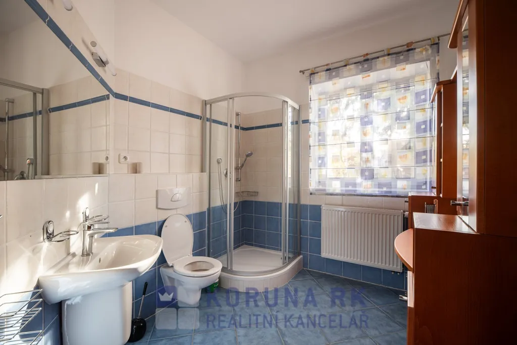 V přízemí je prostorná garáž pro 2 OA na kterou navazují technické a skladové prostory, šatna a vstup se schodištěm do ateliéru (garsoniery). Hlavní obytné prostory jsou ve východní části stavby, kdy v přízemí je prostorný obytný pokoj s jídelnou, kuchyní a kachlovými kamny umístěnými přibližně uprostřed tohoto prostoru, dále je v přízemí ložnice, koupelna s WC a hala se schodištěm do podkroví. Z obytného prostoru je možný výstup na terasu. V podkroví jsou z haly přístupné 2 velké pokoje, koupelna s WC, která je průchozí do šatny a též ateliér. U domu se nachází přístřešek na další auto, nebo karavan a dále dřevěná kolna na nářadí a dřevo. Zahrada je s okrasnými keři, v jihovýchodní části zahrady je skleník.
