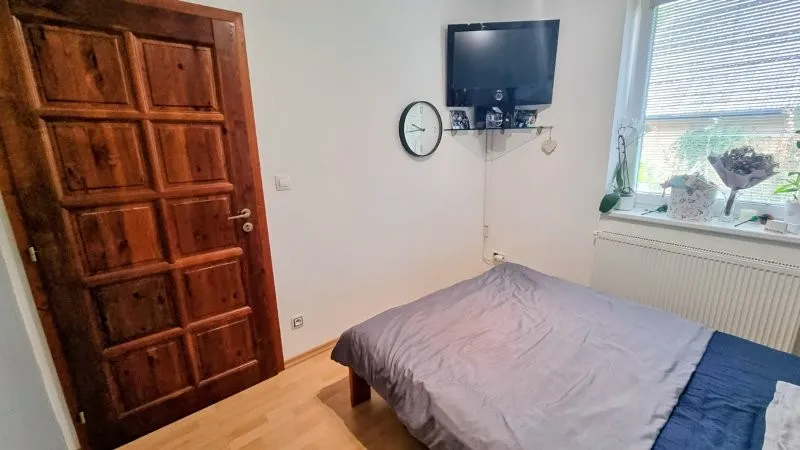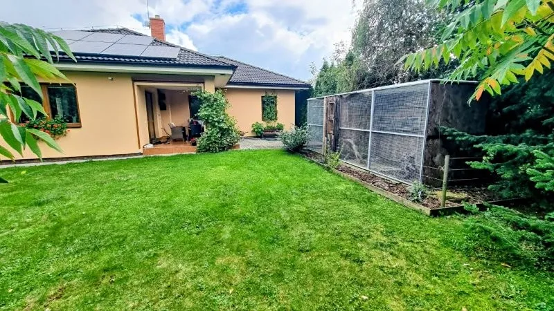 686 Prodej krátkodobě užívaného prostorného rodinného domu 4+1 s prostornou stodolou a zahradou v klidné lokalitě městyse Stařeč kolaudovaného v roce 2009 vzdáleného cca 2 km od Třebíče. V přízemí je prostorné zádveří ( 6,2 m2 ), hala ( 9,1 m2 ) v současnosti propojená s kuchyní ( 12,1 m2 ) a s obývacím pokojem ( 35,6 m2 ), dále pak tři ložnice ( 11,5 m2, 8,2 m2 a 13,8 m2 ), spíž ( 1,7 m2 ), WC ( 2,6 m2 ), koupelna s WC ( 6,5 m2 ). Na dům navazuje z větší části zastřešená terasa ( 33 m2 ), z jedné poloviny podsklepená velká stodola ( 100 m2 ), zahrada ( 1.039 m2 ) a parkovací plocha. V podkroví je prostorná půda. Dům je vybaven fotovoltaickými články s baterií na 9,96 kW a postaven je z bloků POROTHERM o síle 44 cm. Sítě: elektřina, obecní vodovod a kanalizace, plyn je v dosahu cca 35 m. Topení je řešeno převážně krbovou vložkou s možností vytápění elektrokotlem s radiátory, ohřev vody elektrickým boilerem. Aktuální roční spotřeba elektřiny v domě včetně elektrického topení a ohřevu vody je 34.000,- Kč. Zastavěná plocha 160 m2, užitná plocha cca 140 m2, stodola 100 m2. Pozemky celkem o výměře 1.299 m2. PENB D. Volný IHNED.