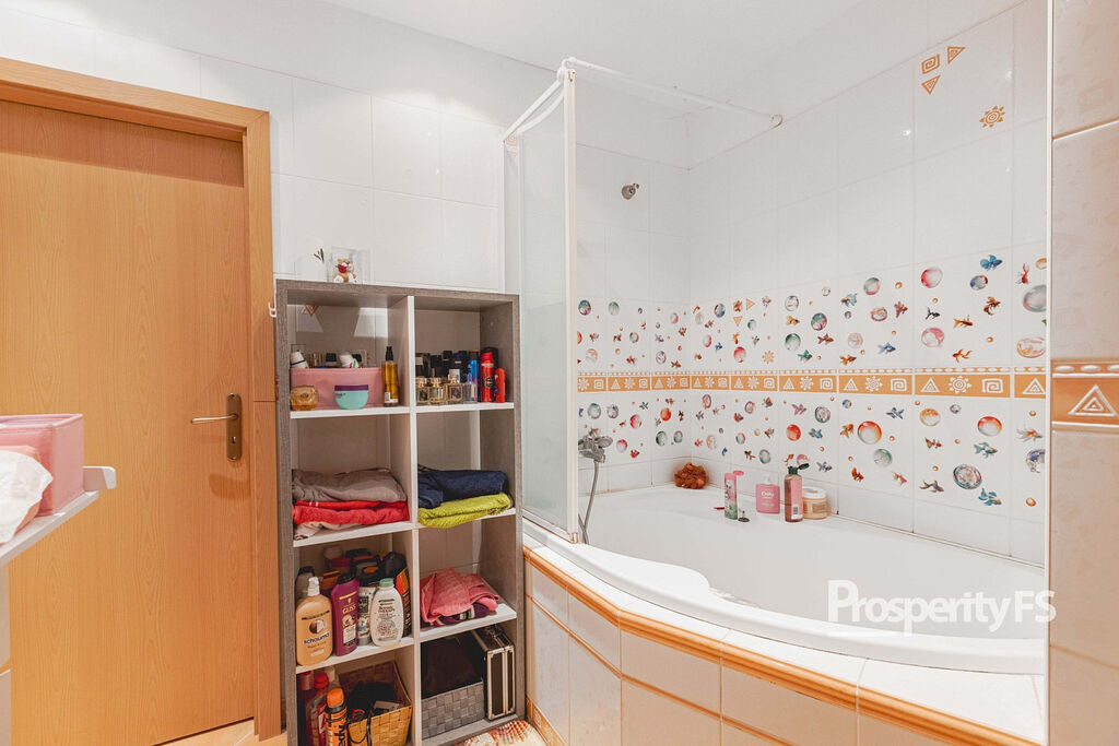 Byt disponuje koupelnou s vanou , kuchyní vybavenou elektrickým sporákem a myčkou . Je částečně zařízený.