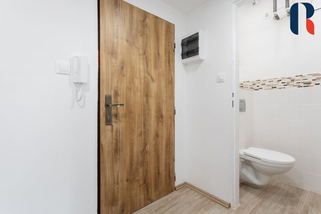 Byt je po kompletní rekonstrukci s novou dlažbou, plovoucí podlahou a novými prosklenými dveřmi. V bytě jsou nové skleněné konvektory s digitálním termostatem, nové rozvody elektřiny, vody a odpadu. Byt je vybaven TV, SAT a internetovou přípojkou. Byt se skládá ze vstupní chodby, pokoje s kuchyňským koutem, ložnicí, koupelnou s obkladem z mozaiky, se sprchovým koutem s podomítkovou baterií, se skleněnou zástěnou a samostatným WC s geberitem. Je vybaven moderní kuchyňskou linkou s obkladem z kamene, se spotřebiči (sklokeramická varná deska, horkovzdušná trouba, digestoř) a barevnými luxfery. Byt je vzdušný, světlý a elegantní. Výhled do zahrady.