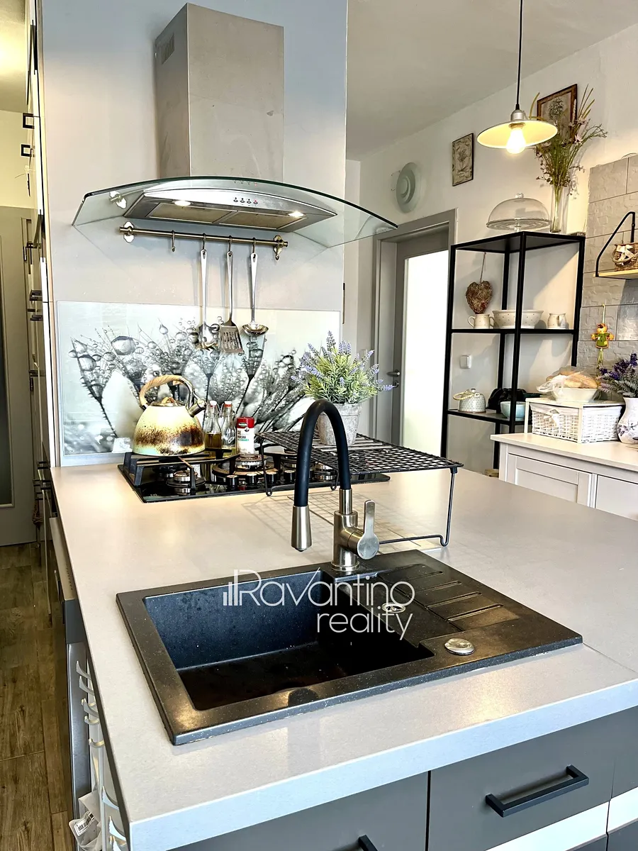 Byt má velmi zajímavě upravenou dispozici – jeho srdcem je totiž kuchyně s ostrovem, která vás svým stylem navodí atmosféru jižní Francie. Tento dojem je podpořen i jihozápadní a jižní orientací oken, která zajišťuje dostatek světla po celý den.