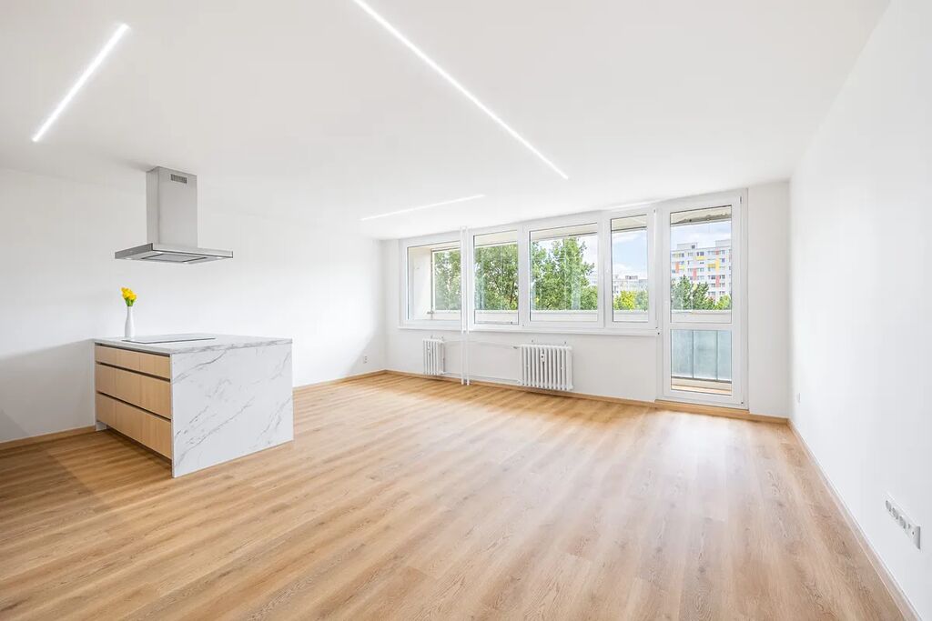 Nabízím kompletně zrekonstruovaný krásný byt 3+kk v 5. patře revitalizovaného domu s výhledem do dáli, s kuchyní s ostrůvkem, prostornou koupelnou s podlahovým topením, přímo u stanice metra Střížkov a centrálního parku Přátelství.