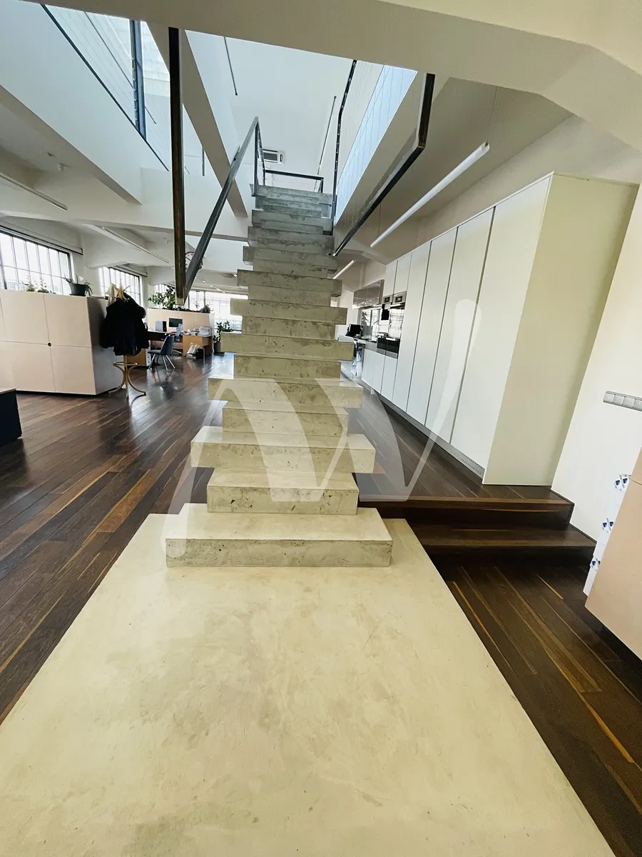 Prostory o velikosti 456 m2 se nachází ve 3. a 4.patře budovy C v AREÁLU PODKOVÁŘSKÁ a mají otevřenou dispozici řešenou jako mezonet, s betonovým schodištěm propojujícím patra. Součástí je prostorná soukromá terasa a balkon.