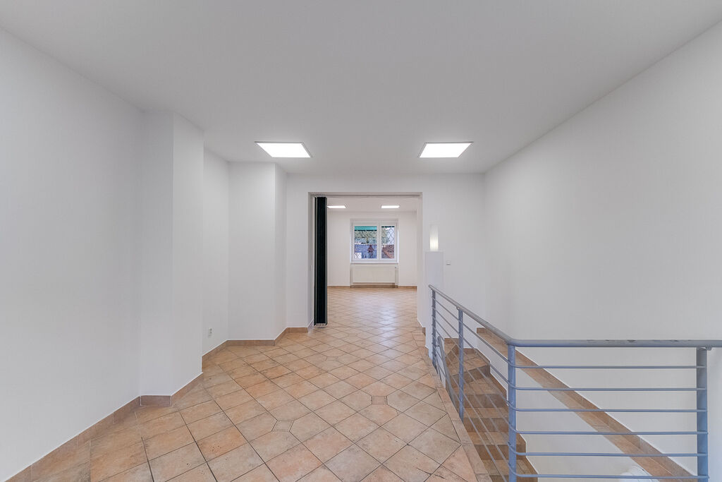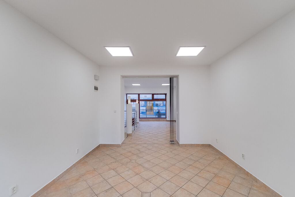 Prostory o celkové ploše 83 m² jsou řešeny na dvou podlažích. V přízemí (s přímým vstupem z ulice) se nachází hlavní, velkoryse řešený obchodní/klientský prostor, který lze flexibilně rozdělit na 2 části pomocí vertikálních žaluzií. Suterén nabízí dvě další místnosti – ideální jako sklad, archiv nebo zázemí. Dále se zde nachází koupelna a samostatné WC.