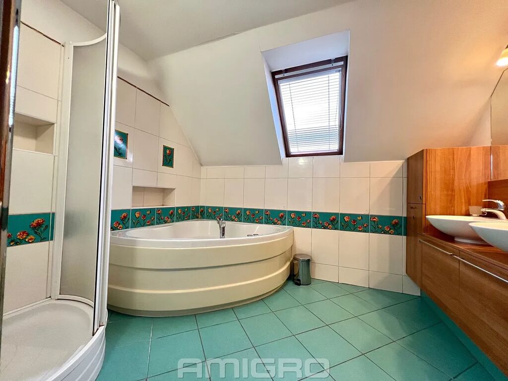 V celém domě je elektrické podlahové vytápění. V domě je 220V i 380V.