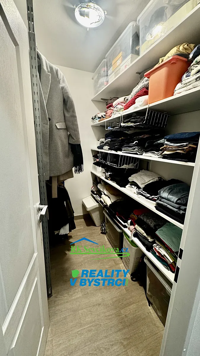 K dispozici úložný zamykatelný prostor na chodbě před bytem, v domě je také kolárna.