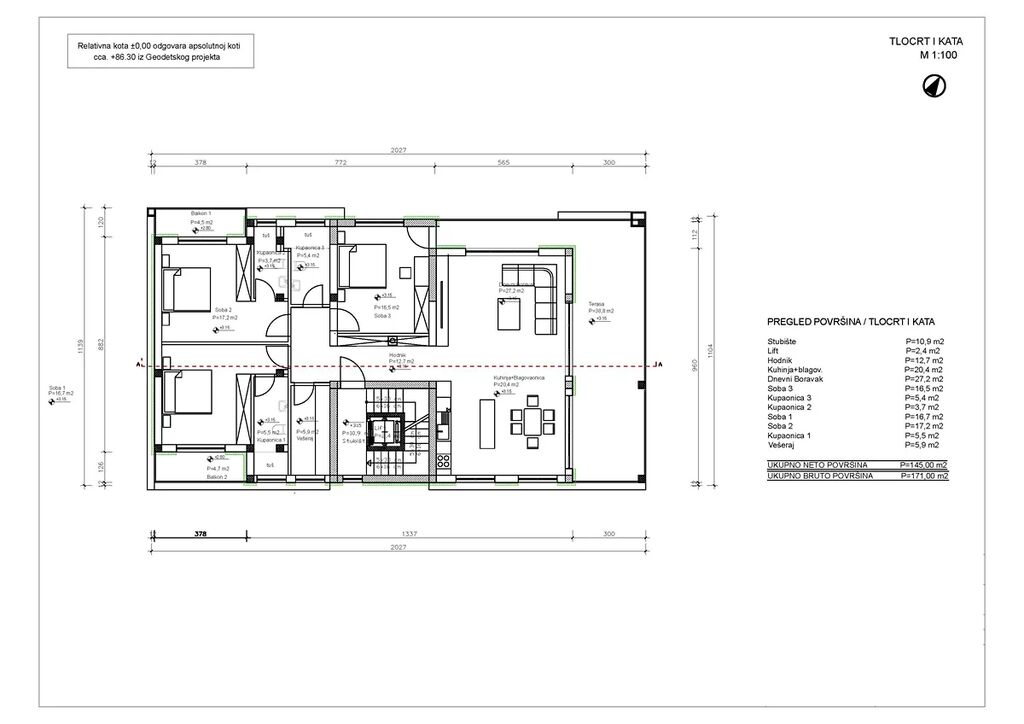 K bytu náleží 2 parkovací místa a skladovací místnost o ploše 11 m2 v suterénu budovy. Apartmán bude vybavený klimatizací a podlahovým vytápěním s tepelným čerpadlem. Vzdálenost do centra města je asi 1,1 km a k moři přibližně 750 m.