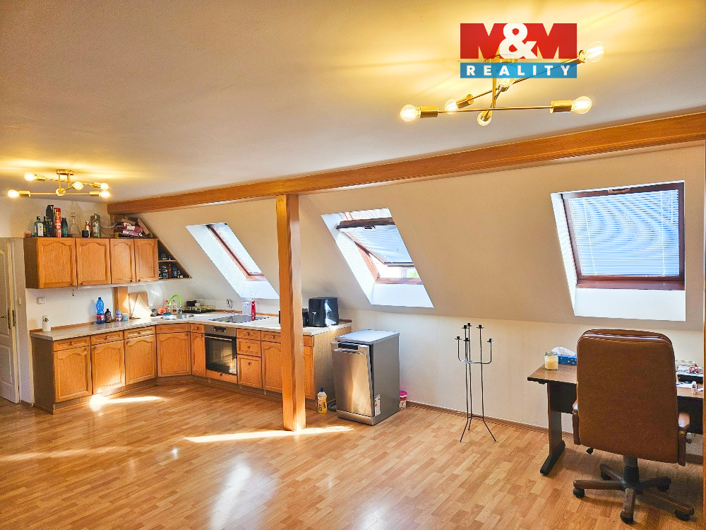 Nabízíme k pronájmu prostorný podkrovní byt o velikosti 110 m², který se nachází ve 2. nadzemním podlaží domu. Byt je ve velmi dobrém stavu, osvětlení celých prostor A + LED a ohřev vody bojlerem energetické třídy B. Svým uspořádáním je ideální pro rodinu, která hledá pohodlné a útulné bydlení.