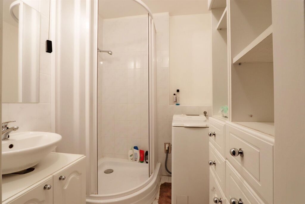 Koupelna je vybavena sprchovým koutem, umyvadlem se zrcadlem, přípojkou na pračku a koupelnovými skříňkami.