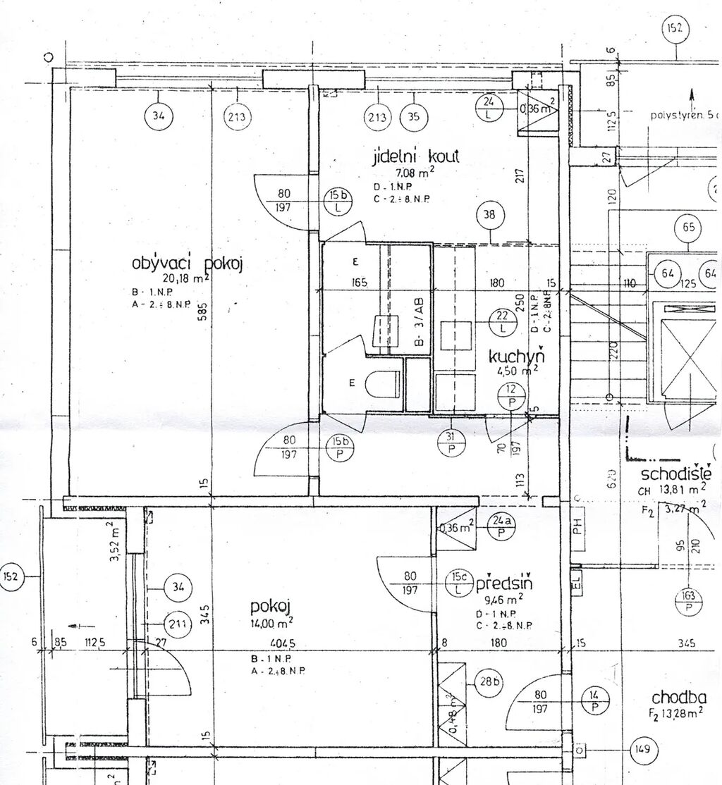 Pokoje: 20 m2, 14m2, kuchyně 12m2