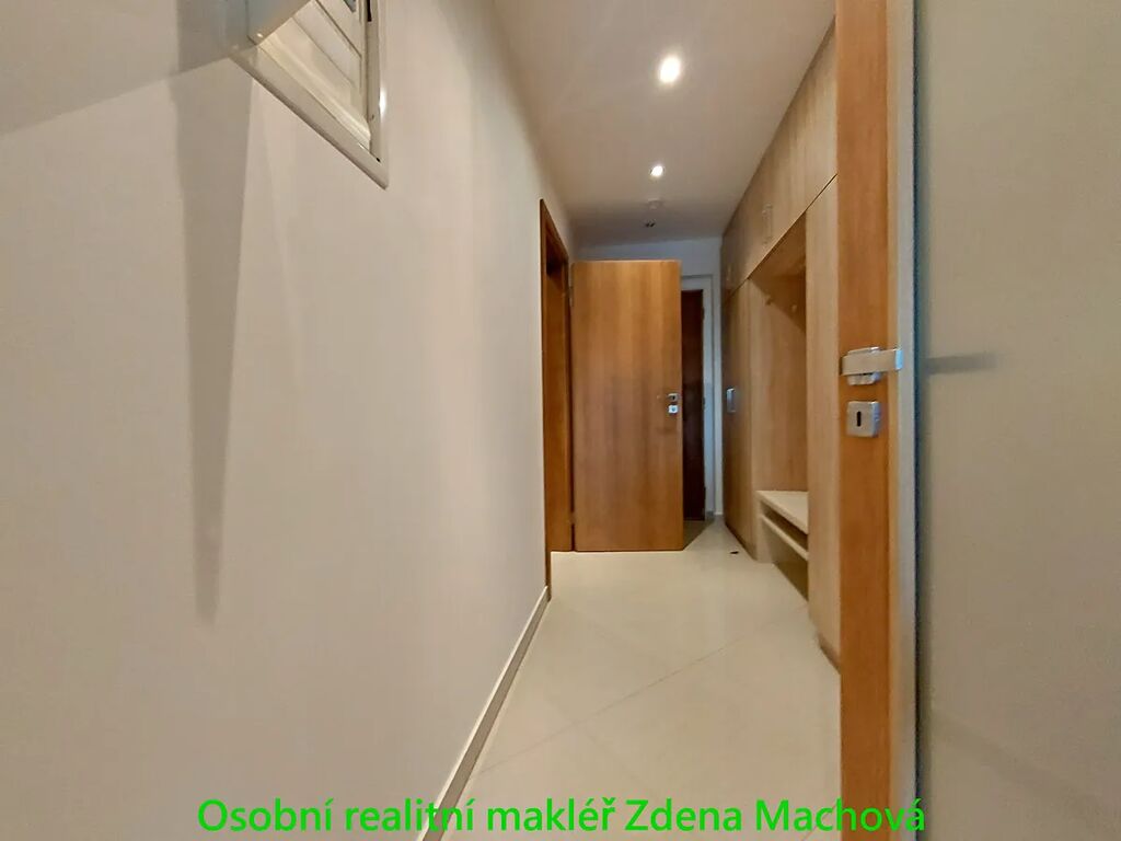 Byt 1+kk o velikosti 33,1 m² se nachází v 5. nadzemním podlaží a je vybaven plně zařízenou kuchyňskou linkou s lednicí, mrazákem, myčkou, mikrovlnou troubou a varnou deskou. Obývací pokoj s kuchyňským koutem má 21 m² a je prosvětlen francouzským oknem s trojskly a elektricky ovládanou venkovní žaluzií. V předsíni o velikosti 7,1 m² jsou vysoké vestavěné skříně, které poskytují dostatek úložného prostoru. Koupelna je vybavena prostorným sprchovým koutem a pračkou, toaleta je samostatná pod vlastním uzavřením.