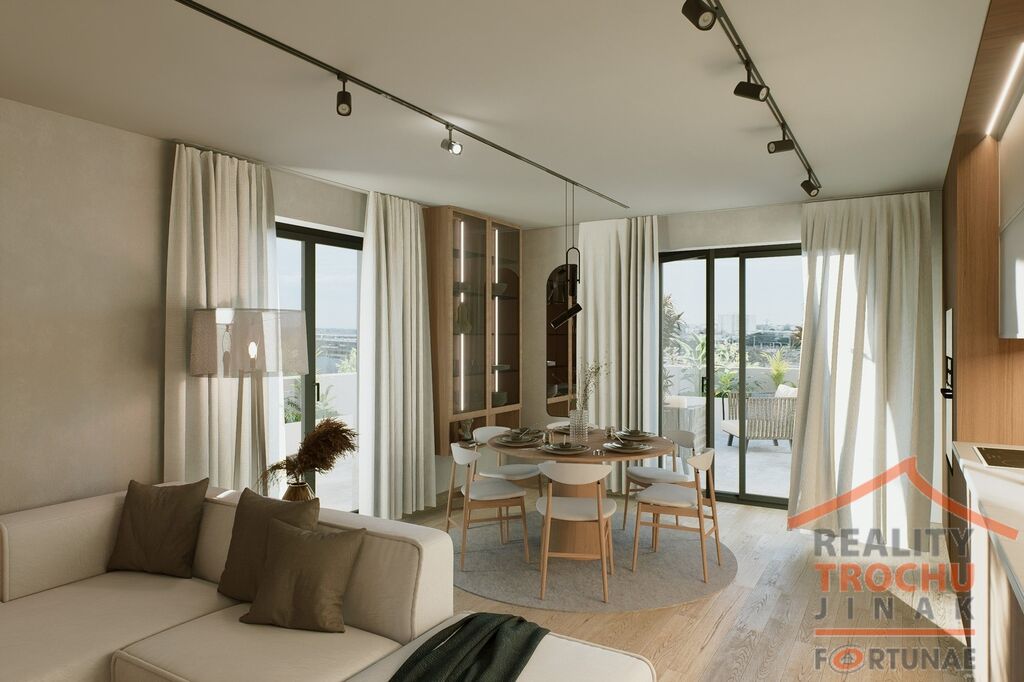 V novém developerském projektu Rezidence Kristian nabízíme prodej, moderního a nízkoenergetického bydlení v bytu 2+kk s balkónem (2x) a vnitřním parkovacím stáním ve vyhledávané lokalitě v Hradci Králové – Moravské Předměstí. Bytová jednotka se nachází ve 4. NP zděného bytového domu, celková užitná plocha 70,9 m2, 1. balkón 7,6 m2, 2. balkón 1,8 m2, šatna 10,6 m2. Dispozice: vstupní chodba, obývací pokoj s kuchyňským koutem, jídelnou, ložnicí, koupelna s WC. Vytápění: ústřední dálkové. K bytu náleží 1x vnitřní parkovací stání. Ve standardním provedení: plastová okna hranatá s izolačním trojsklem, vinylové podlahy KPP – výběr z 12 typů dekorů, koupelna s keramickou dlažbou La Ceramica Factory – výběr ze 4 dekorů, obklady Rako Systém, umyvadlo keramické se stojánkovou pákovou baterií, vana bílá akrylátová obdélníková. WC závěsné bílé. Použité materiály kombinují moderní technologie a udržitelnost a především snižují energetické náklady.