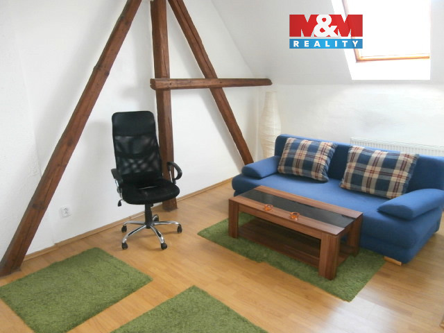 Nabízíme k pronájmu atypicky řešený podkrovní byt vel. 2+1, plus třetí mezonetová místnost. Celková výměra bytu, 80 m2, III.NP, cihlový dům. Byt je částečně zařízený inventářem jako je sedačka a skříňky, v kuchyni zůstává pračka, na chodbě bytu pak věšáková stěna. Větší kuchyňskou místnost máme rozdělenou na jídelní a varnou část. Na tuto navazují 2 samostatné pokoje a koupelna. Do třetího pokoje se vchází po dřevěném schodišti, kde ve druhé části vidíme střešní okno, které zajišťuje větrání a přístup světla. Tento mezonetový prostor je využíván jako ložnice a pracovna. Koupelna je po původní zdařilé rekonstrukci upravena se sprchovým koutem a přepážkou oddělující WC. Bonusem je využívání podesty před vstupem do bytu, např. pro kompletní uložení obuvi, kabátů, dále spoluužívání společné okrasné zahrady v uzavřeném dvoře. Stávající inventář bude k ponechání dle dohody. Připravenost bytu k pronájmu - od 12/2025. Rezervace možná již na první prohlídce. Více informací u makléře.