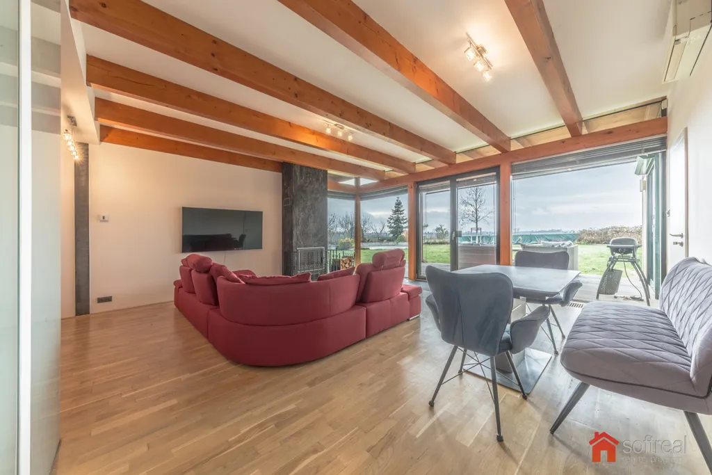 - velký obytný prostor s kvalitní kuchyňskou linkou, prosklenou stěnou a vstupem na terasu,