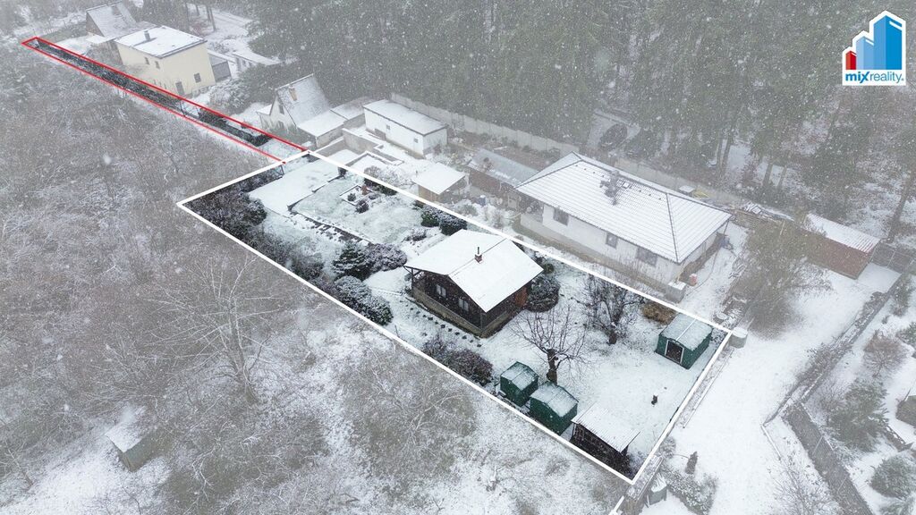 Pozemek je mírně svažitý a nachází se na něm chatka o zastavěné ploše 49 m².