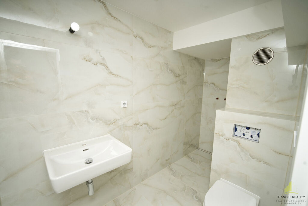 Celková plocha bytu činí 134 m² a k němu náleží terasa o velikosti 7 m². Tento byt nabízí zajímavé prostorové řešení, které vytváří vzdušný a světlý pocit, poskytující spoustu příjemných zákoutí a zaručující soukromí pro všechny jeho obyvatele. Navíc existuje možnost vytvoření dalšího pokoje podle vašich potřeb.