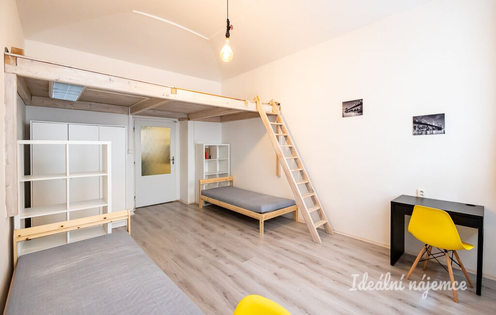 Byt se nabízí částečně vybavený. Kuchyně disponuje lednicí, varnou deskou a digestoří. První ložnice je zařízena 2 postelemi s matracemi, 2 knihovnami, 2 psacími stoly s 2 židlemi, skříní a patrem na spaní. Součástí druhé ložnice jsou 2 postele s matracemi, knihovna, 2 psací stoly s 2 židlemi a skříň. V koupelně je sprchový kout, umyvadlo, zrcadlo a toaleta.