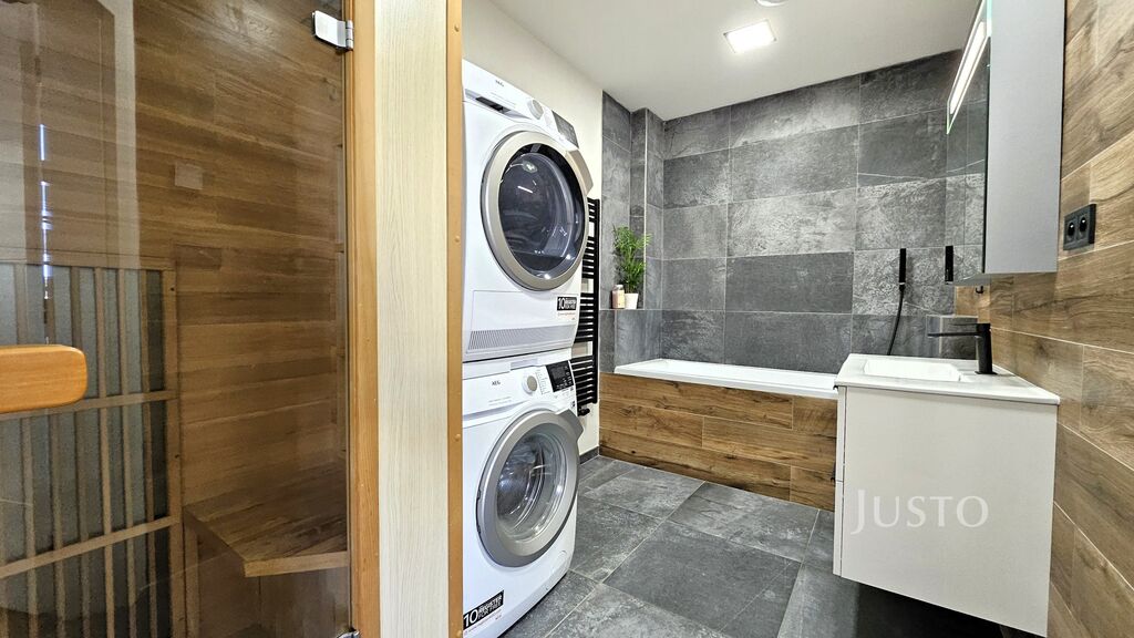 — Koupelna s vanou a přípravou pro pračku a sušičku, sauna – 6,5 m²