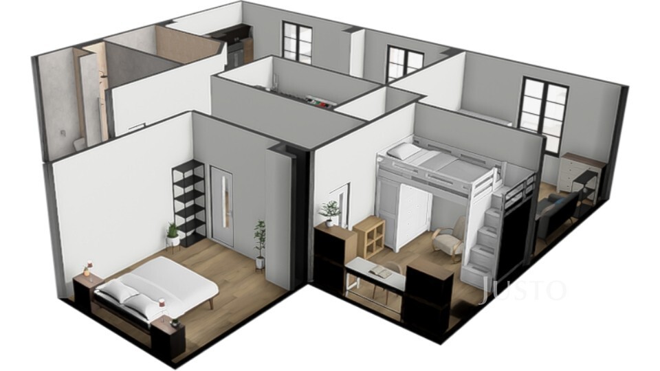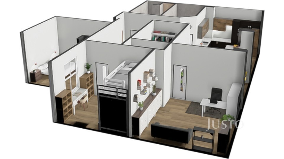 Tři samostatné a prostorné ložnice / pokoje – 16,5 m² + 12,2 m² + 11,4 m². Ideální zónové rozdělení pro maximální soukromí každého člena domácnosti.
