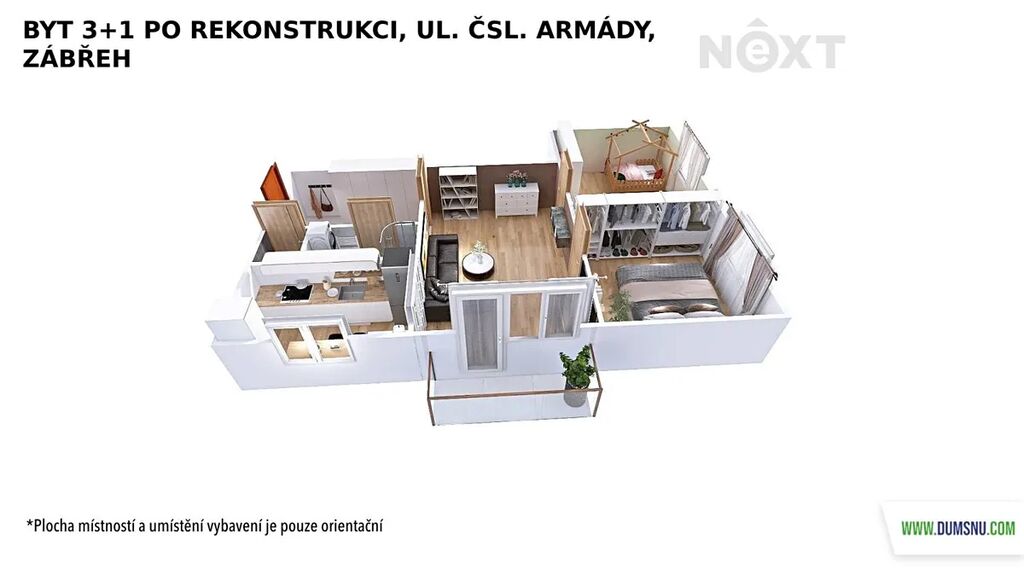 K pronájmu nabízíme zrekonstruovaný byt s balkonem o dispozici 3+1, který se nachází v 5. NP revitalizovaného panelového domu bez výtahu.