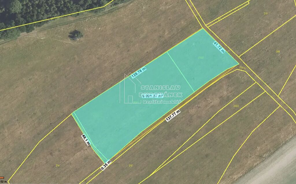 Všechny 3 parcely jsou u sebe, tvoří přibližný obdélník o délce stran cca 133 x 43 metrů.