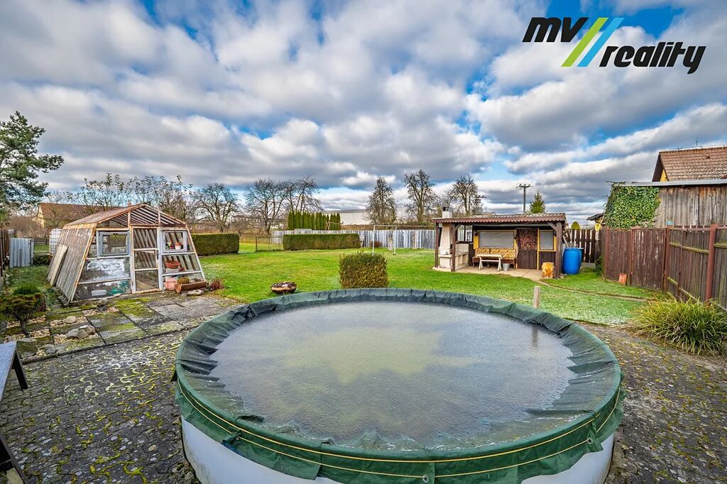 Velkým benefitem nemovitosti je rozsáhlý pozemek o celkové výměře 2 427 m². Zahrada je převážně slunná, ideální pro pěstování, odpočinek nebo volnočasové aktivity. Na pozemku se nachází skleník, garáž, kůlna a několik praktických přístavků, které mohou sloužit pro uskladnění vybavení, menší dílnu nebo další hobby využití. Součástí je také venkovní posezení a bazén, perfektní pro rodinné grilování, letní večery či odpočinek v soukromí.