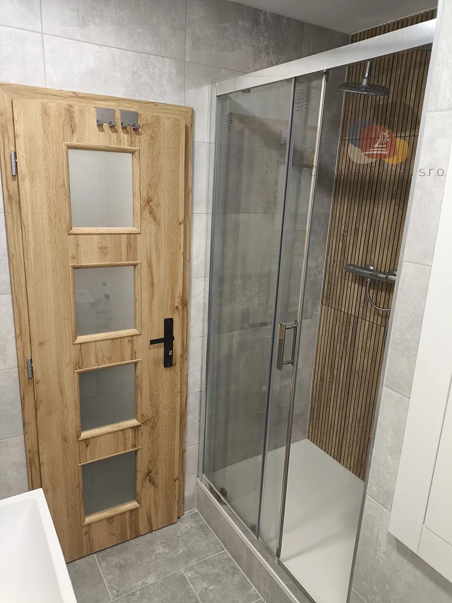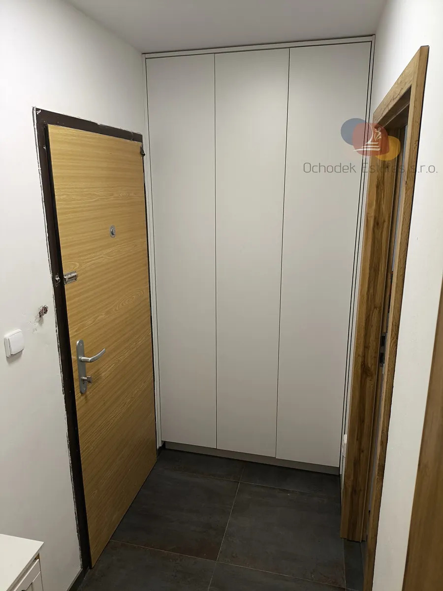 Ale vezměme to popořadě. Po vstupu do bytu se octnete v 3,6m2 velké chodbě, jejíž součástí je nalevo umístěná vestavěná skříň s atypickou hloubkou 97cm, kam dokážete uložit opravdu hooodně věcí. Napravo od vstupních dveří je se svými 3,4m2 koupelna s prostorným sprchovým koutem, toaletou a umyvadlem.