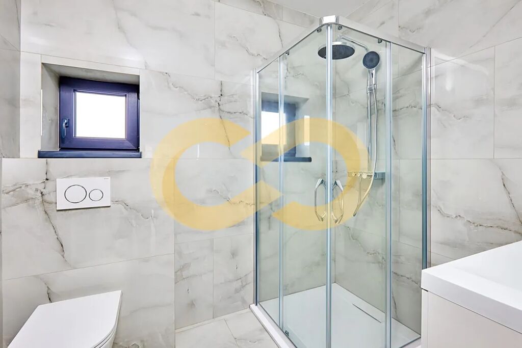 Koupelny jsou tu dvě, takže se ráno nebudete tlačit u umyvadla. V přízemí je velká koupelna se sprchovým koutem, vanou, toaletou i bidetem a v patře druhá menší se sprchou a WC.