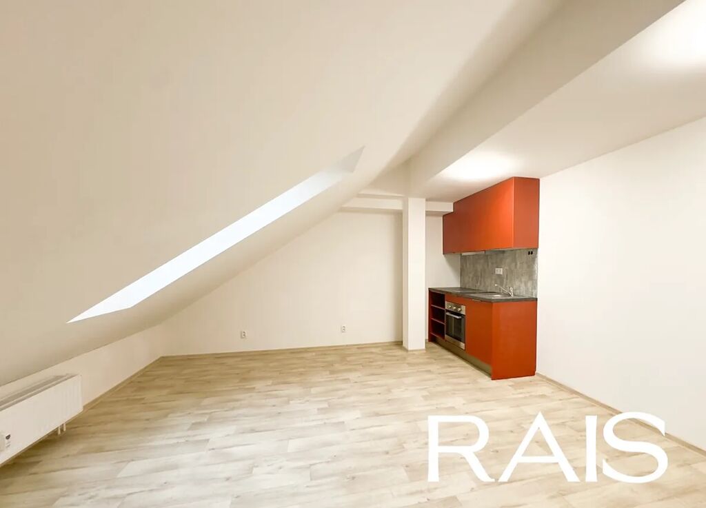 Podkrovní ateliérový prostor působí vzdušně a klidně a nabízí příjemný výhled na město. Velká koupelna je vybavena sprchovým koutem a poskytuje dostatek místa včetně prostoru pro pračku. Moderní kuchyňská linka zahrnuje vestavěnou lednici, troubu a indukční varnou desku.