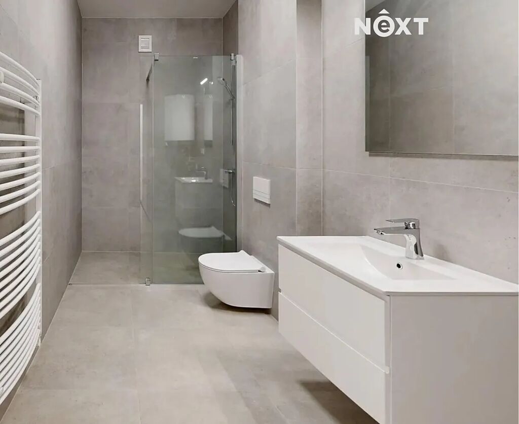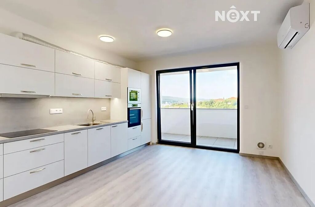 Byt má dispozici 1kk (33 m2) s velkou terasou (10 m2) a náleží k němu také parkovací místo a sklep. V bytě je nová kuchyňská linka se spotřebiči, předokenní rolety a klimatizace a je k dispozici hned.