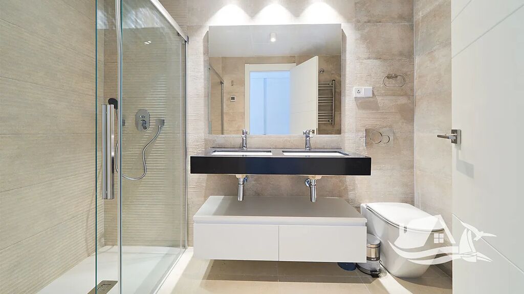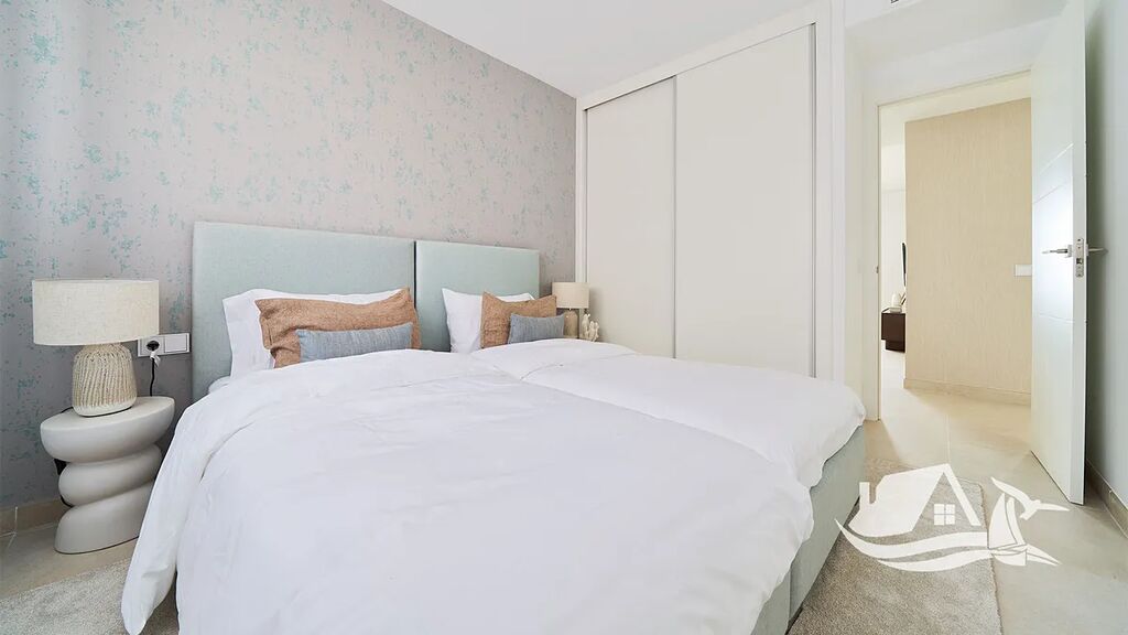 Apartmán druhem patře nabízí 158 m² komfortního prostoru s dvěma ložnicemi, dvěma moderními koupelnami a otevřenou obytnou částí propojenou s kuchyní.