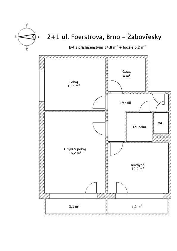Pronájem bytu 2+1, Brno, Foerstrova, 55 m2