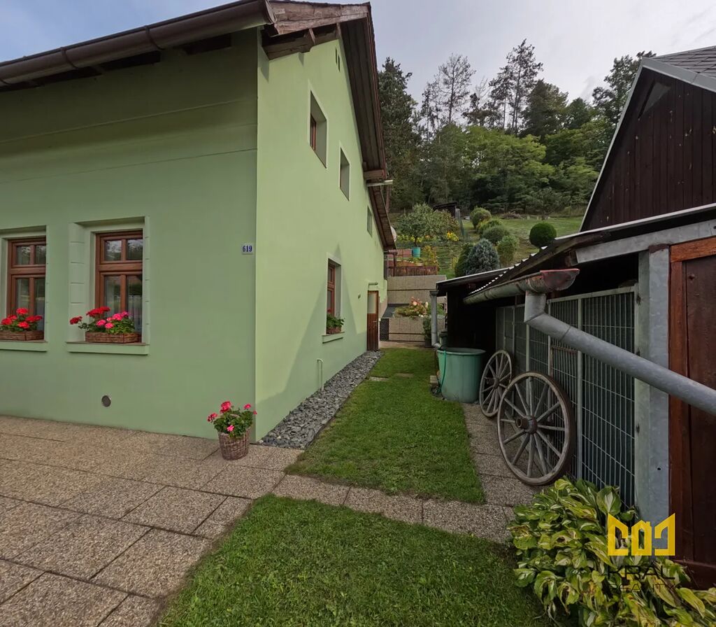 K domu náleží velice udržovaná zahrada s malým vinohradem, skleníkem, spoustu záhonů, okrasnou skalkou, relaxační zónou s vířivkou pro šest osob. Dominantou zahrady je prostorná zastřešená pergola, která budoucímu majiteli zajistí příjemné posezení a krásný výhled do krajiny. Dále je zajímavostí a výhodou vlastní kus lesa do kterého je přístup přímo z konce zahrady.