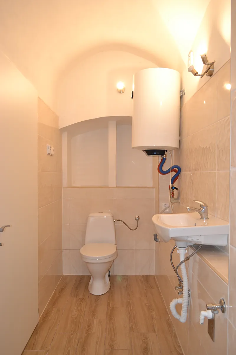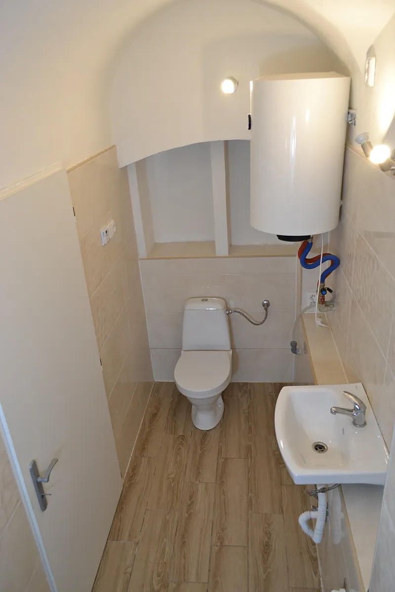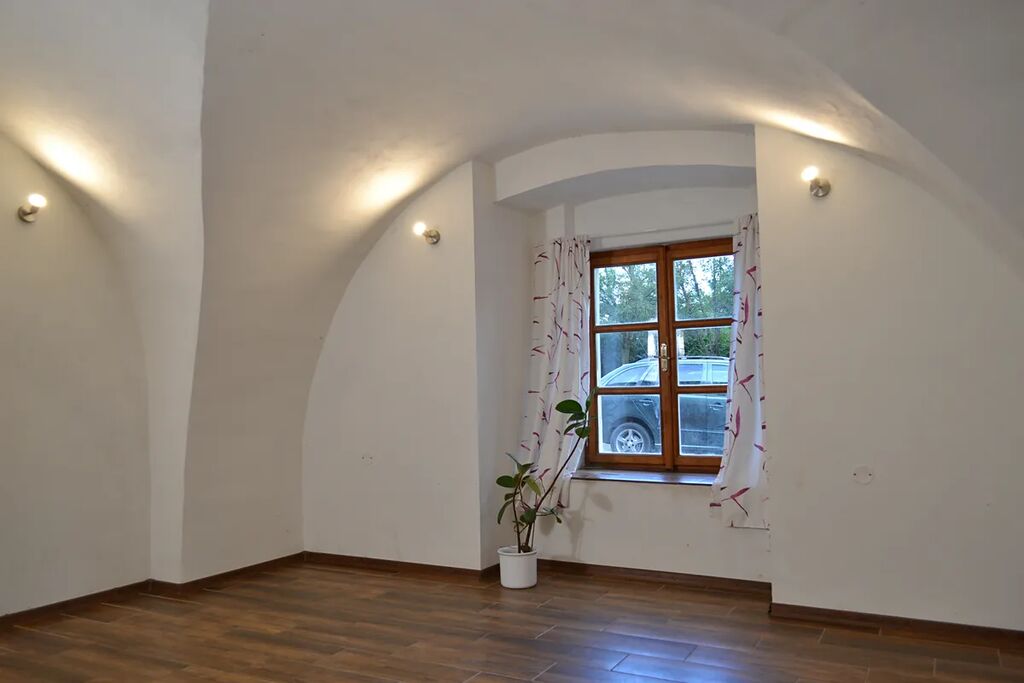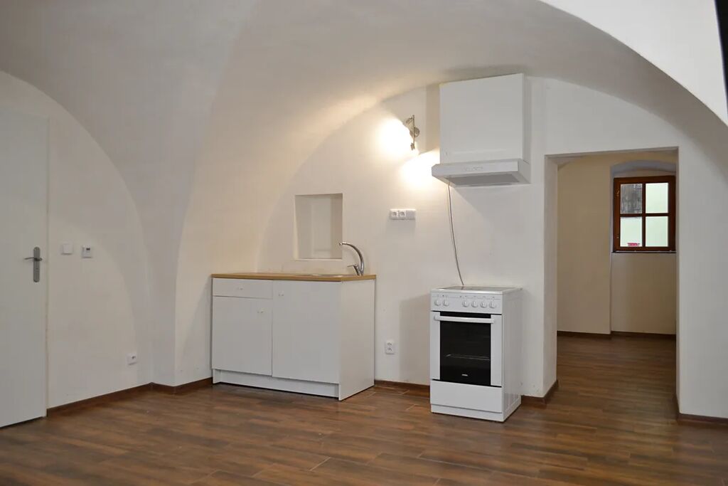 Jedná se o hezký, atypický byt po rekonstrukci v přízemí historického domu v širším centru města. Prostorný obývací pokoj s kuchyňským koutem je situován do ulice Havlíčkova s výhledem do přilehlého parku. Podlahu tvoří vyhřívaná dlažba, strop zajímavá křížová klenba. Ložnice, ve které je vstup do koupelny, je orientována do tichého vnitrobloku. Byt je vybaven malou kuchyňskou linkou se sporákem, lednice není součástí pronájmu. Ohřev teplé vody el. boilerem, připojení internetu je zahrnuto v nájemném. Elektrické podlahové topení v celém bytě včetně koupelny, regulovatelné v každé místnosti.