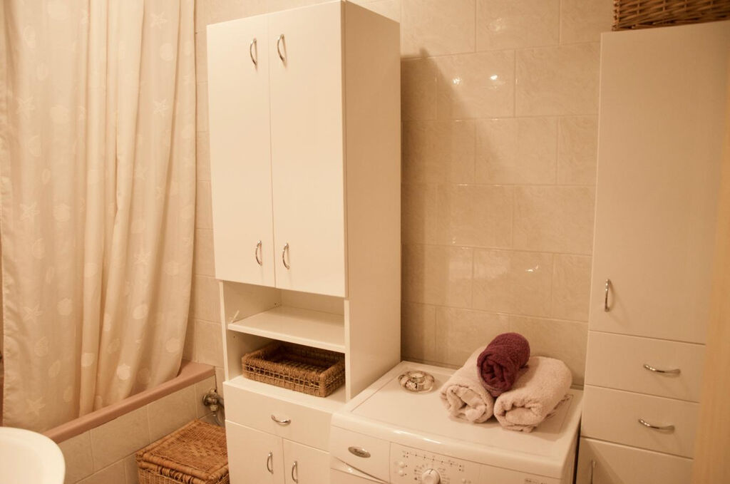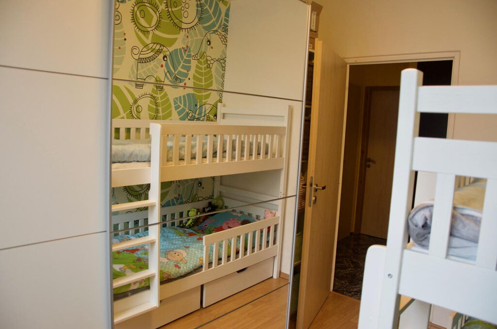 Byt se nabízí částečně vybavený. Kuchyňská linka disponuje lednicí, elektrickou troubou, sklokeramickou deskou a digestoří. V kuchyni je i jídelní stůl se židlemi. Součástí obývací části je TV sestava a knihovna. Z obýváku se vchází na balkón. Ložnice je nezařízená. V dětském pokoji se nachází šatní skříň a police. V koupelně najdeme vanu a umyvadlo se zrcadlem. Toaleta je samostatně. V předsíni je úložná šatní skříň a botník.