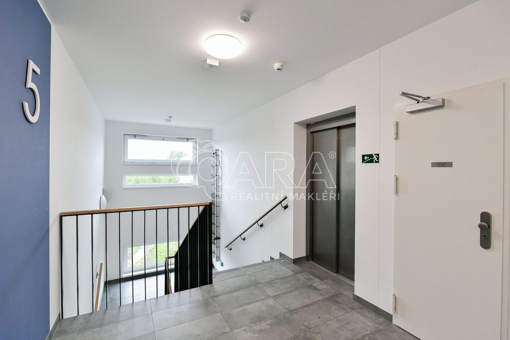 Byt je umístěn v 5. patře, je v perfektním stavu. Velkou výhodou je také komora netradičně umístěna hned u výtahu na patře.