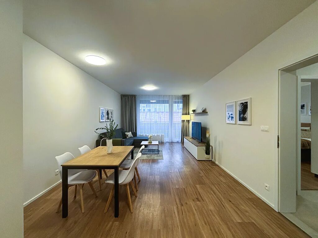 Nabízíme Vám byt 3+kk k pronájmu v projektu AFI Home Karlín. Kompletně zařízený a stylový byt se nachází v 6. nadzemním podlaží v novostavbě. Kompletně zařízena kuchyň včetně spotřebičů (lednice, mikr. trouba, myčka). Dal je vybaven obývací pokoj a jedna ložnice. Nábytek byl vyroben na míru s ohledem na dostatek úložného prostoru. Smart TV a rychlé připojeni k internetu. V okolí je kompletní občanská vybavenost: pizzerie, školka, kavárna, Beauty Salon, supermarket.