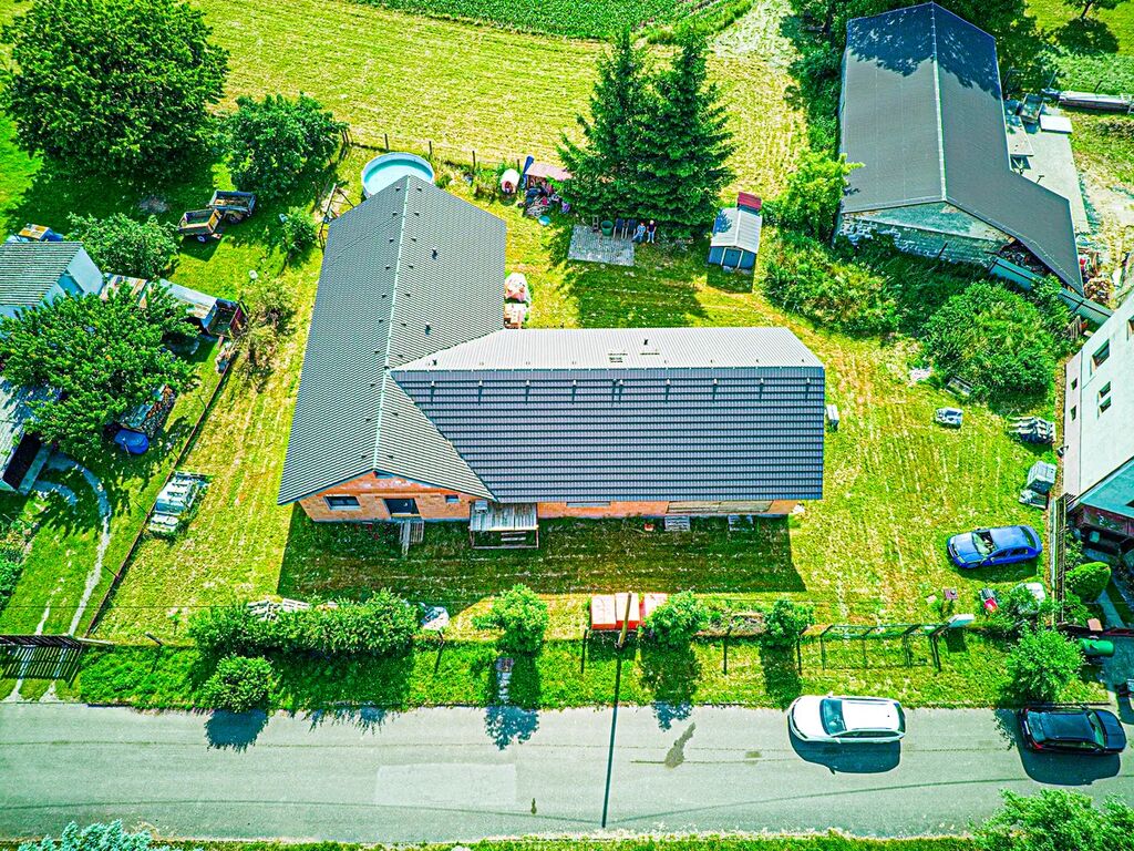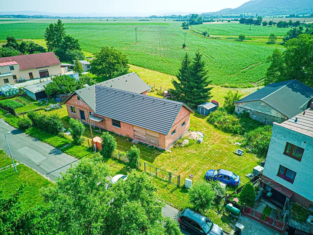 Nabízím vám ke koupi rozestavěnou stavbu moderního rodinného domu dispozičně řešeného jako 6+kk, navrženého do tvaru písmene „L“. Nemovitost se nachází na rovinatém, slunném a esteticky působivém pozemku v klidné a malebné obci s dobrou dostupností.