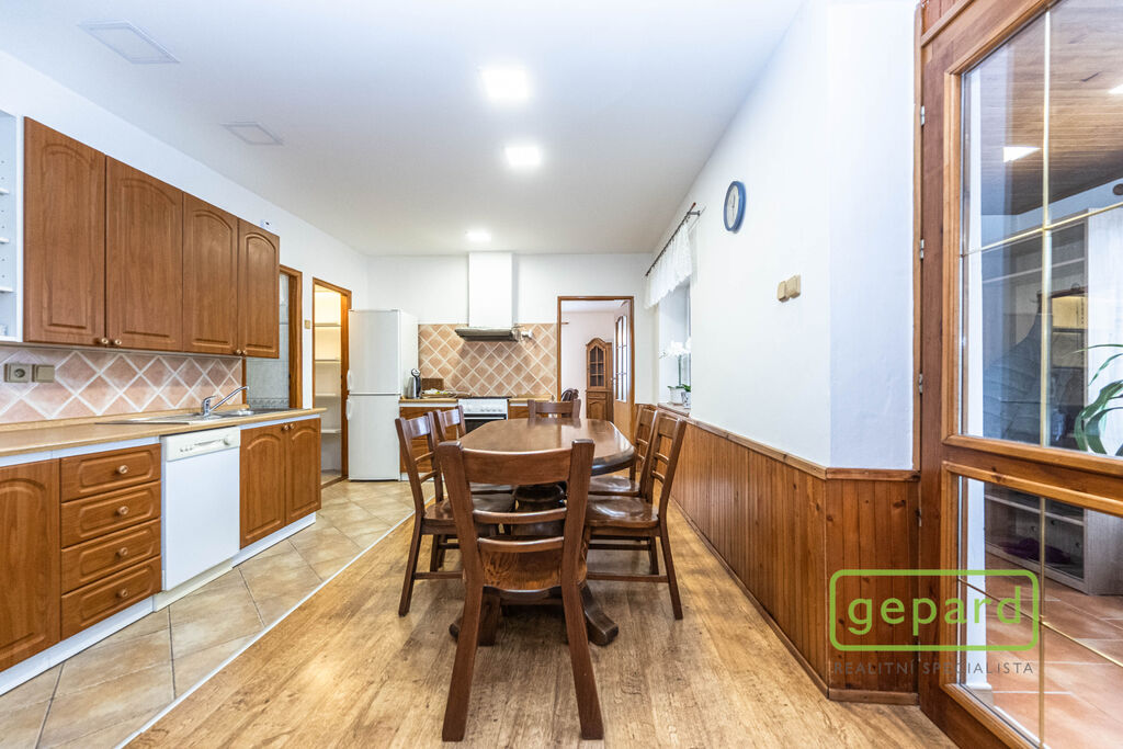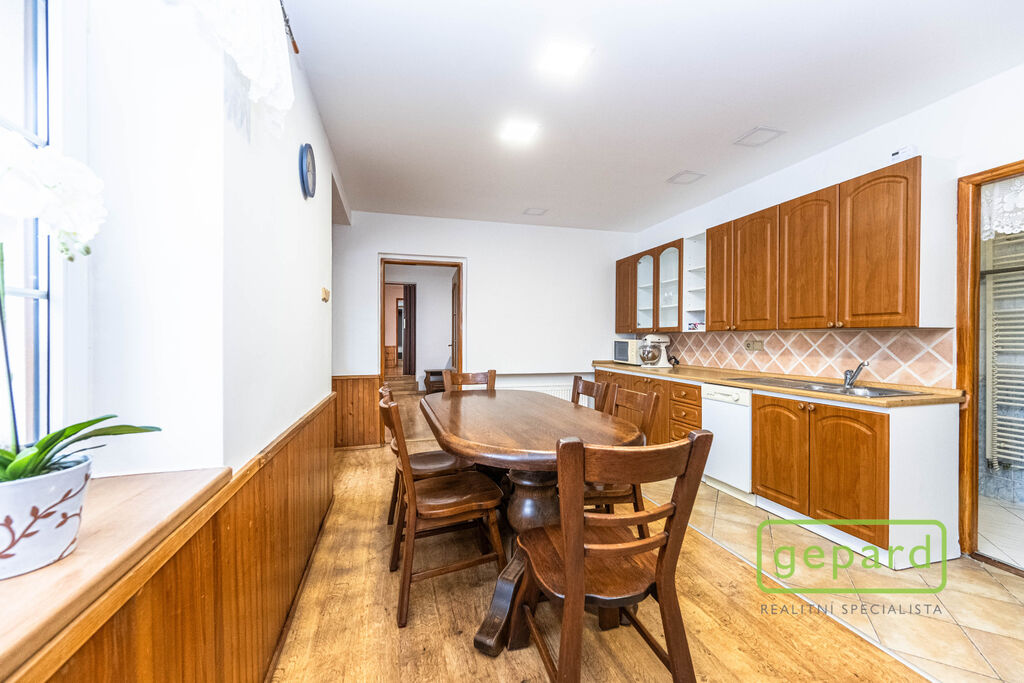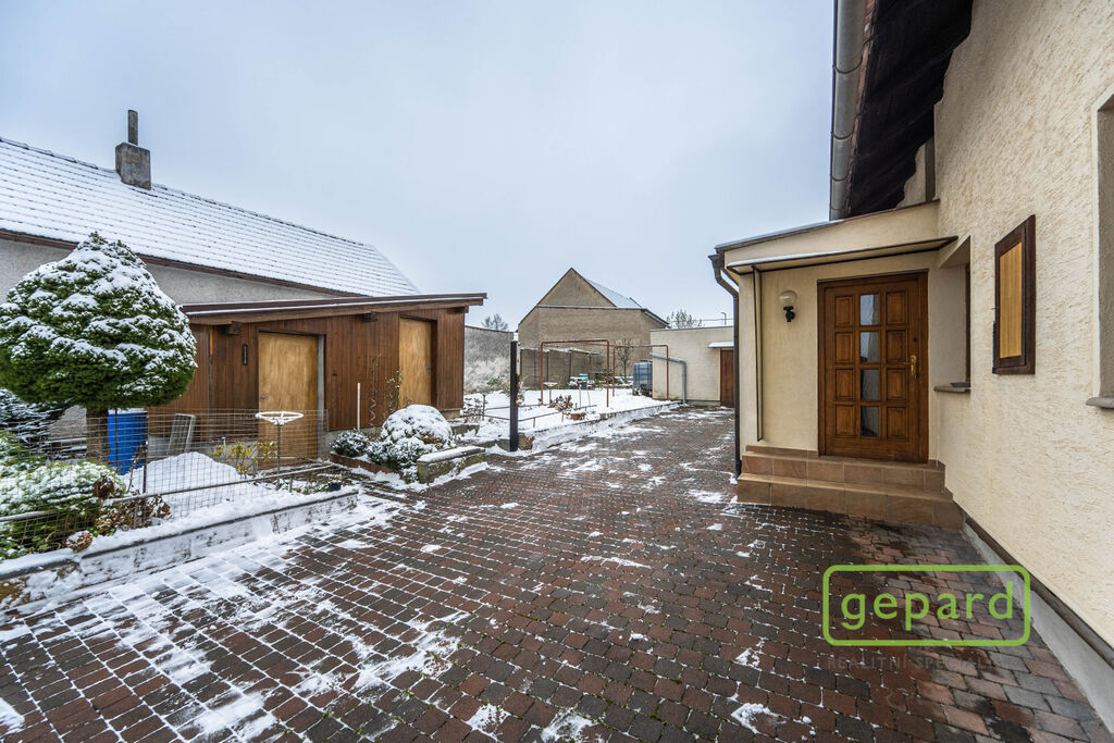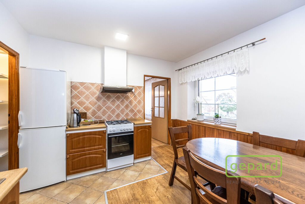 Realitní společnost Gepard Vám nabízí k pronájmu rodinný dům o zastavěné ploše 113 m2 a dispozicí 3+1 s verandou, šatnou, prádelnou a sklepem. Dům prošel postupnou rekonstrukcí cca před 8-12 let, je stále vytápěn a nyní čeká na nového nájemníka. Je zateplený a okna jsou plastová. Celková velikost pozemku je 491 m2. Dům je vytápěn plynovým kotlem, který rovněž zajišťuje ohřev užitkové vody. Vstup do domu je verandou, ze které je vstup na samostatnou toaletu a do hlavní části domu. Kuchyně s jídelnou je kompletně vybavena kuchyňskou linkou vč. spotřebičů, je zde i praktická komora na potraviny. Koupelna je vybavena prostorným bezbariérovým sprchovým koutem, umyvadlem a topným žebříkem. Obývací pokoj je vybaven nábytkem vč. TV. Další pokoj je vlevo od kuchyně, průchozí a za ním se nachází prostorná ložnice s šatnou. Odtud se dostaneme do přístavby, kde je prádelna a vstup do sklepa. Možnost parkování na pozemku u domu. Garáž není součástí pronájmu.