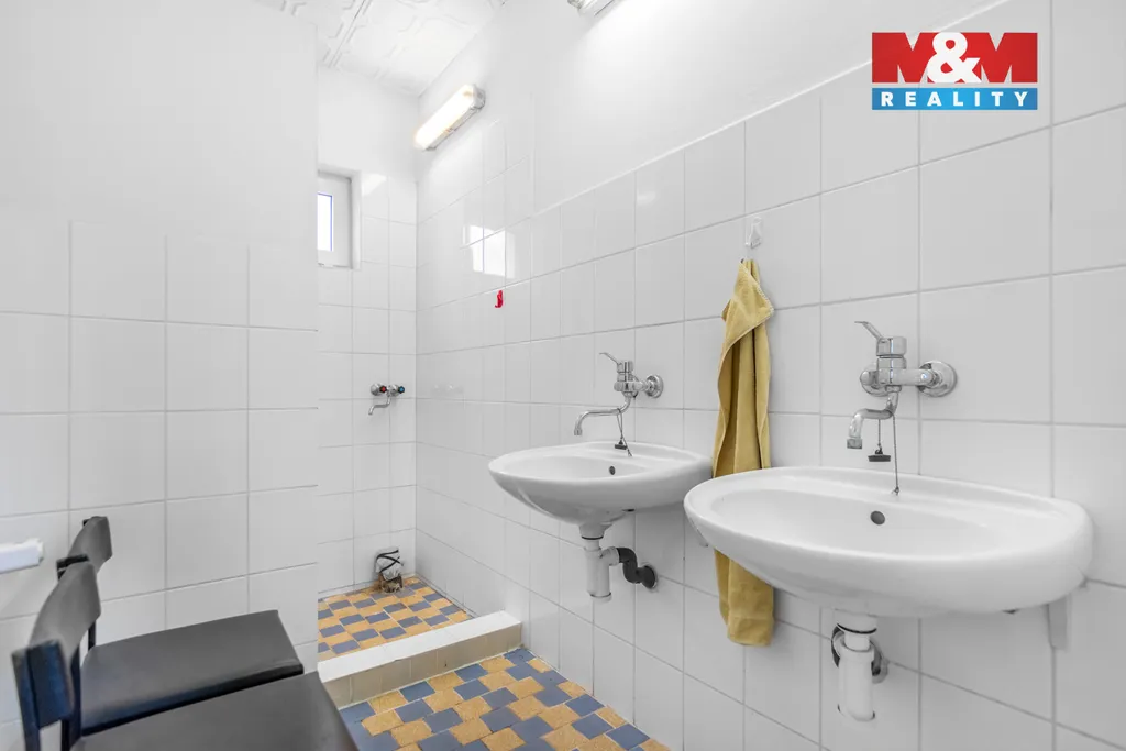 Obchodní prostor – 232 m², kancelář – 22 m², dílna 1 – 65 m²: hever, montážní jáma, olejový kotel, umyvadlo, vstup na půdičku, světlíky. Dílna 2 – 58 m²: myčka, umyvadlo, vstup na půdu.